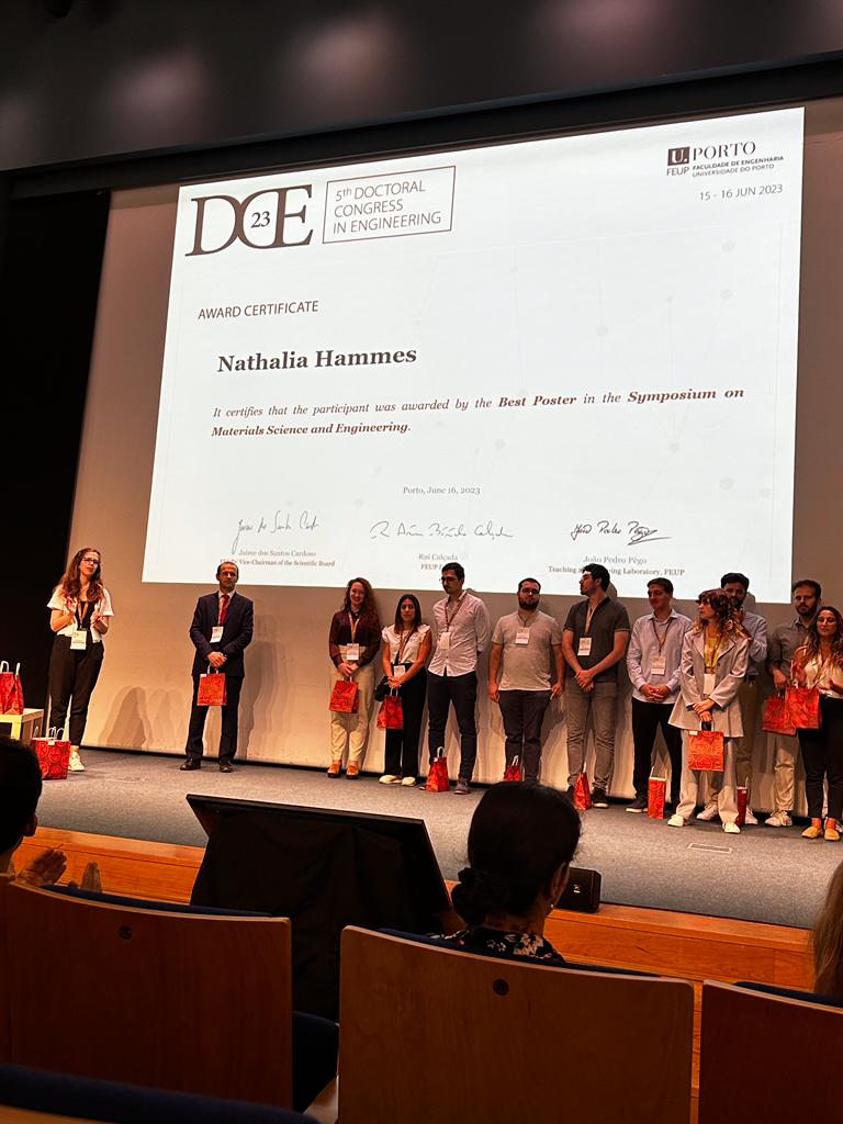 Nathalia Hammes, University of Minho, “Development of Coaxial Fibers Loaded with Polyethylene Glycol 2000 for Thermoregulation Applications” at 5th Doctoral Congress in Engineering (DCE), Symposium on Materials Science and Engineering, Porto, Portugal (15-16/06/2023)
