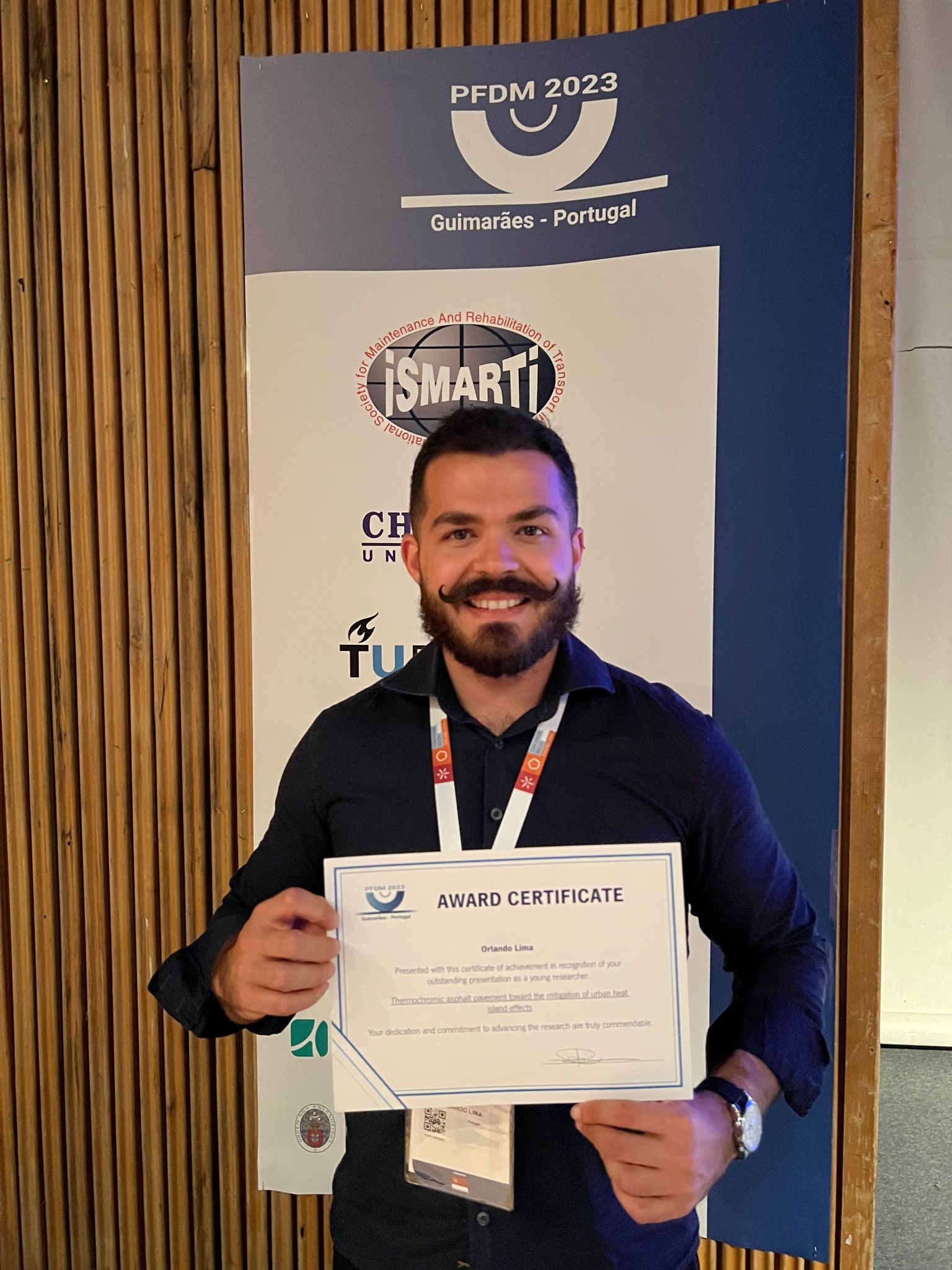 Orlando de Sousa Lima Júnior, University of Minho, “Thermochromic asphalt pavement toward the mitigation of urban heat island effects”, Pavement Functional Design and Management (PFDM), Heat Island Effect from Pavements Session, Guimarães, Portugal (27-29/04/2023)